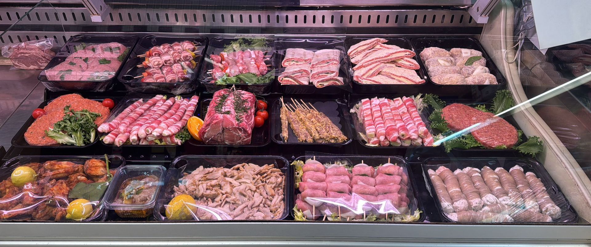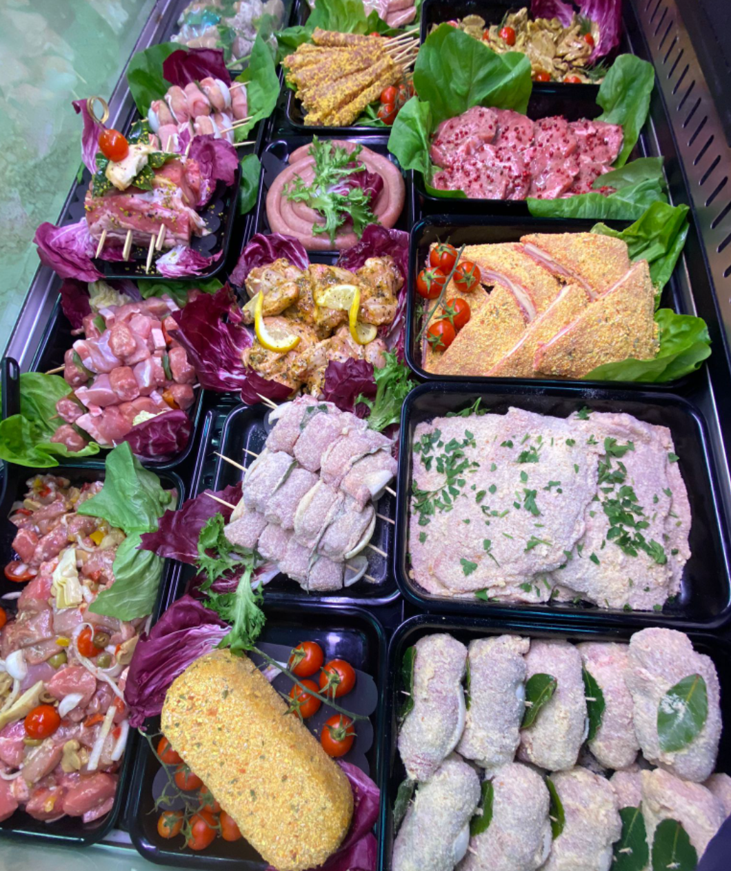 La Macelleria Le Delizie della Carne F.lli Nantele di Agrigento offre la più selezioni di carni bovine, suine, equine, ovine, pollame e cacciagioni, disponibili sempre fresche e in tagli differenti per assicurarti solo il meglio per le tue ricette a base di carne. La macelleria è anche gastronomia d’asporto con tante prelibatezze preparate con le carne di qualità della selezione Nantele e arricchite con ingredienti ricchi di gusto. Nel punto vendita potrai acquistare piatti d’asporto come pollo allo spiedo aromatizzato con spezie, hamburger di carne scelte insaporiti con verdure o formaggi, salumi e latticini, polpette di carne pronte da cuocere, saporiti spiedini e molto altro ancora. I piatti sono disponibili anche con servizio a domiclio. Sfogliate la gallery per scoprire tutte le preparazioni.